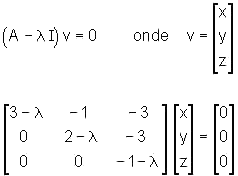 2o) Calcular o autovetor correspondente à cada autovalor encontrado.