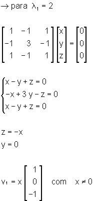 Para que a equação acima admita soluções não-nulas, ou seja, para que se obtenha vetores v não-nulos deve-se ter