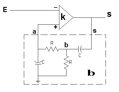O circuito oscilará na frequência f = 1/[2p RC], mesmo que a entrada E seja nula. A forma de onda deverá ser aproximadamente senoidal, visto que o amplificador real apresenta não linearidades, alem de polos e zeros não considerados neste exemplo.