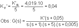 A constante Kv para o sistema compensado é, então, Kv = 8,04.